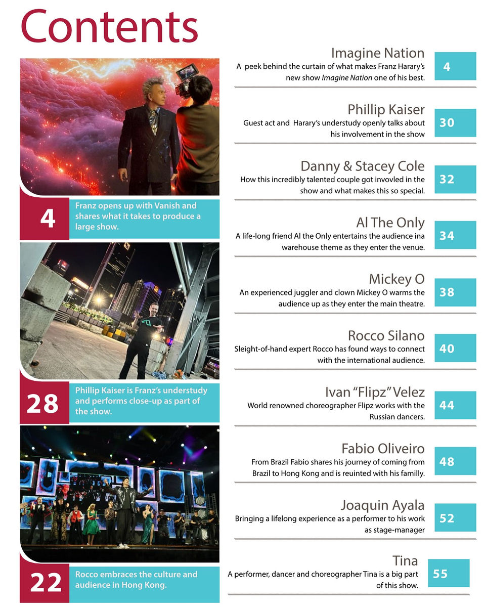 "IMAGINE NATION" is a grand-scale magic show produced by world-renowned illusionist Franz Harary, running from December 28, 2024, to March 30, 2025, at the Wan Chai Harbourfront Event Space in Hong Kong